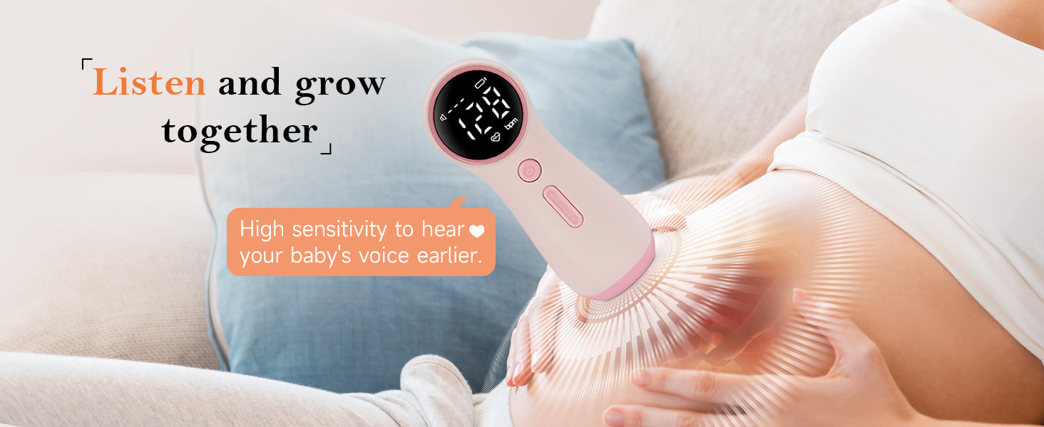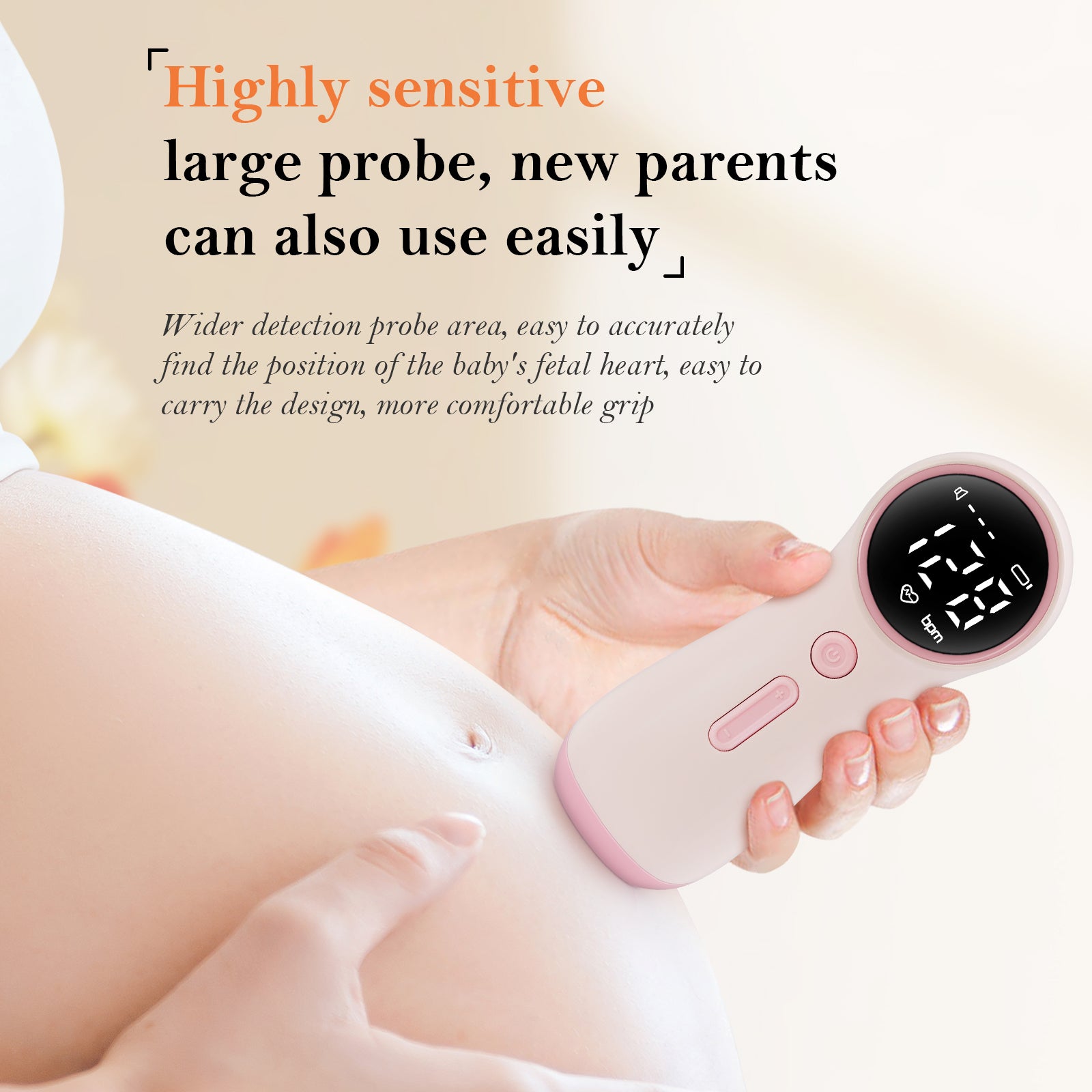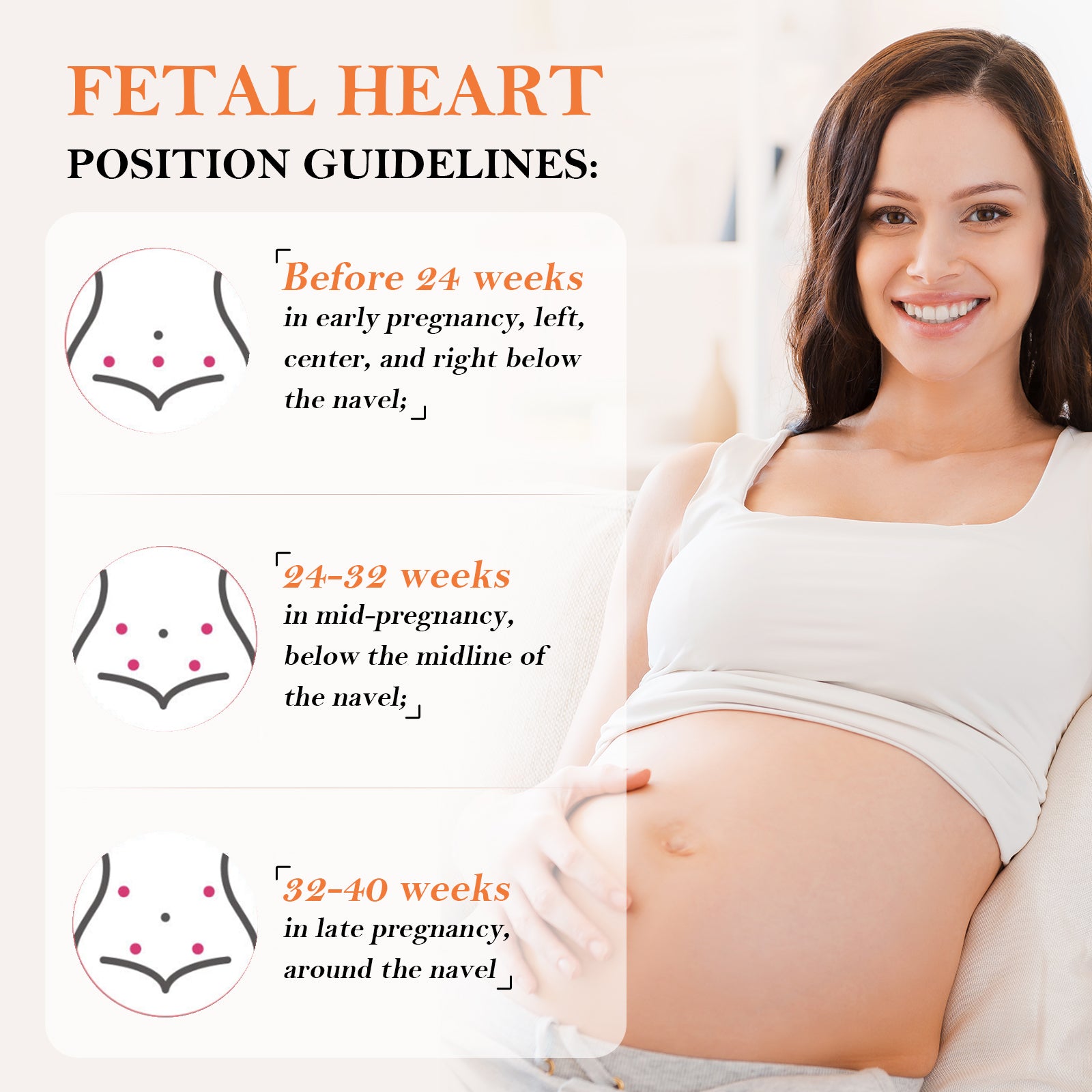 Tempatkan probe di perut, gerakkan perlahan hingga Anda mendengar detak jantung yang jelas dan stabil.