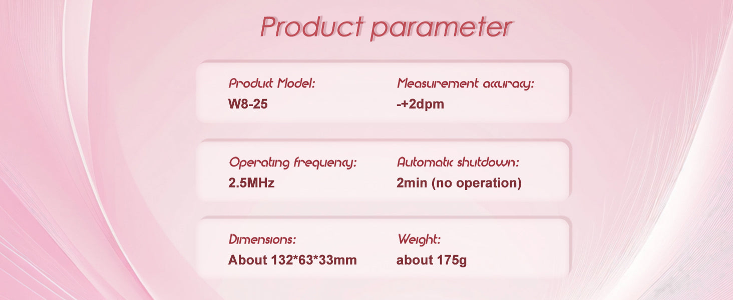 Eovuox W8-25は、家庭用に設計された2.5 MHzの胎児心拍モニターで、臨床レベルの感度で胎児の心臓活動を追跡することができます。